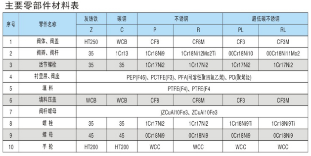 1.氟塑料全衬里GFJ41F46型直通式、GFJ45F46型直流式、GFJ44F46型角式截止阀,具有结构紧凑、启闭灵活、耐腐蚀性能强,行程短(一般为公称通径1/4)等项优点,被广泛应用在石油、化工等管路系统中做截断介质用,但需要强调的是氟塑料衬里的截止阀严禁用做流量调节,以免节流口处产生的高速介质流冲蚀破坏密封面。